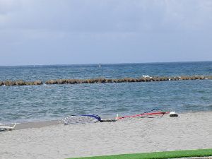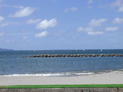 あーよく吹いてる、海面は昨日より穏やか・・気づいたらセッテキングしてました(笑)
