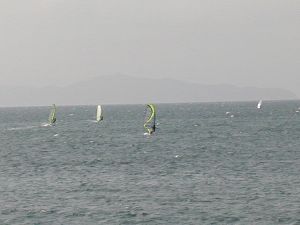 セールを5.0に張り替えて出る、ジャスト、海面は遊ぶのにちょうど良いくらいのうねり。